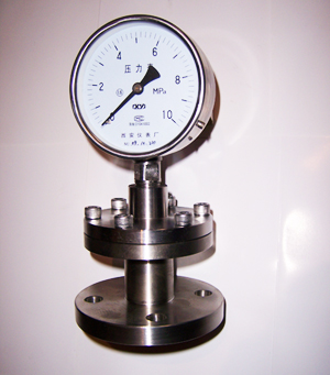 为了扩大各种通用型压力仪表的使用范围,能适用于测量强腐蚀、高温、高粘度、易结晶、易凝固和有固体浮游物介质的压力,以及对某些测量介质不能直接进入通用型仪表内和便于清洗防止沉淀物质积聚的场合的压力检测时,必须采用由隔膜隔离器与通用型压力仪表组成一个系统的隔膜表。